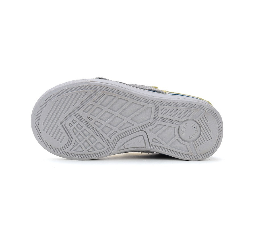 Átmeneti gyerekcipő kék-sárga színben, gumis orral. Valódi bőrből készült vízlepergető zárt cipő, amely nemcsak tartást ad a lábnak, hanem biztosítja a lábak természetes mozgását. Kényelmes és divatos modell a D.D.Step átmeneti gyerekcipő kollekciójából.