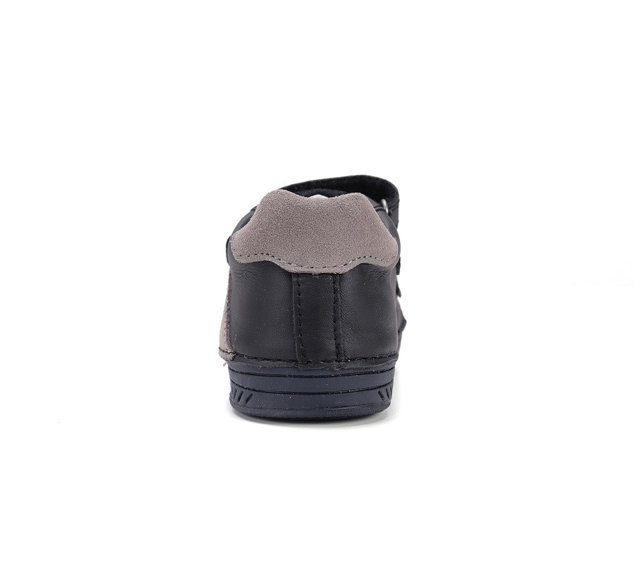 Átmeneti gyerekcipő fekete színben, gumis orral. Valódi bőrből készült vízlepergető zárt cipő, amely nemcsak tartást ad a lábnak, hanem biztosítja a lábak természetes mozgását. Kényelmes és divatos modell a D.D.Step átmeneti gyerekcipő kollekciójából.