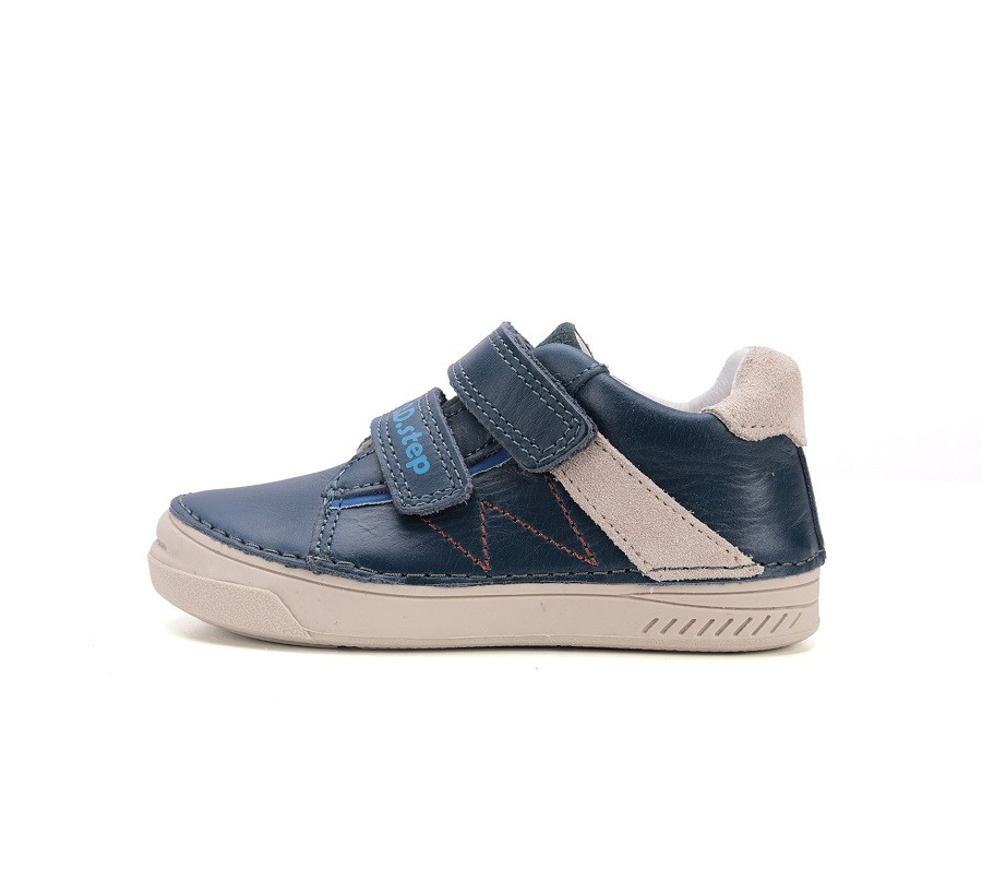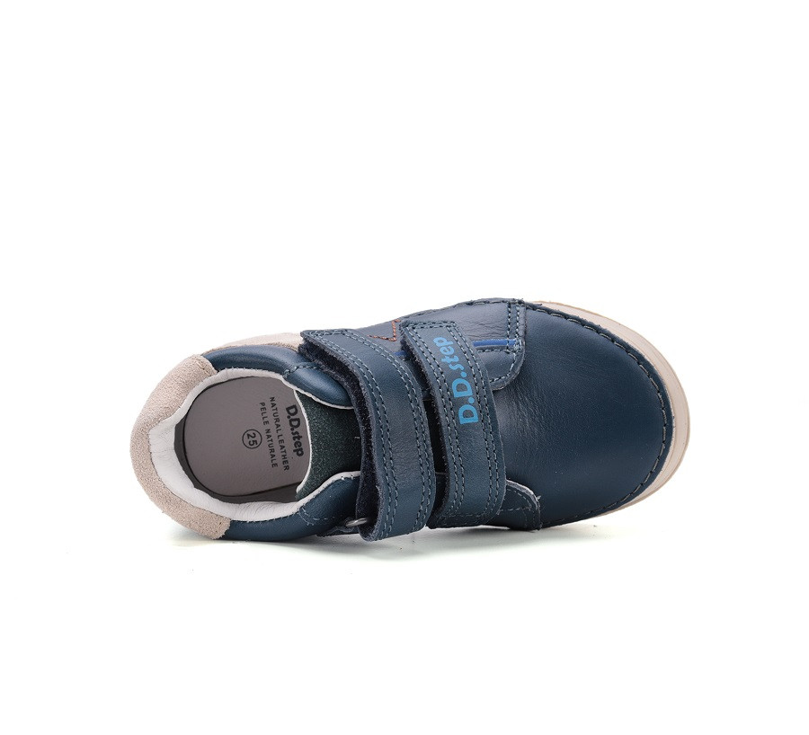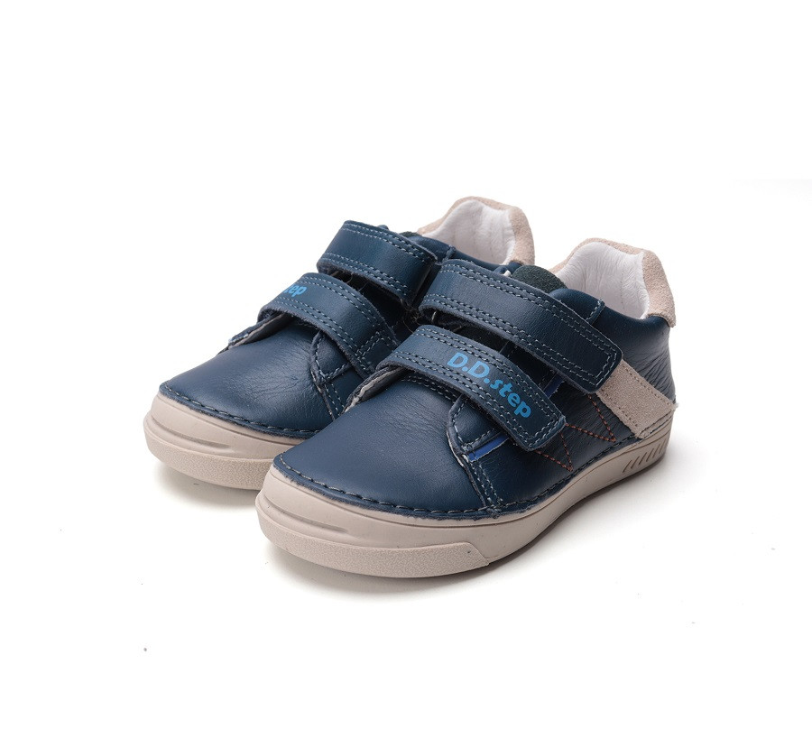 Átmeneti gyerekcipő kék színben, gumis orral. Valódi bőrből készült vízlepergető zárt cipő, amely nemcsak tartást ad a lábnak, hanem biztosítja a lábak természetes mozgását. Kényelmes és divatos modell a D.D.Step átmeneti gyerekcipő kollekciójából.