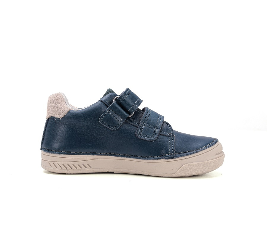 Átmeneti gyerekcipő kék színben, gumis orral. Valódi bőrből készült vízlepergető zárt cipő, amely nemcsak tartást ad a lábnak, hanem biztosítja a lábak természetes mozgását. Kényelmes és divatos modell a D.D.Step átmeneti gyerekcipő kollekciójából.