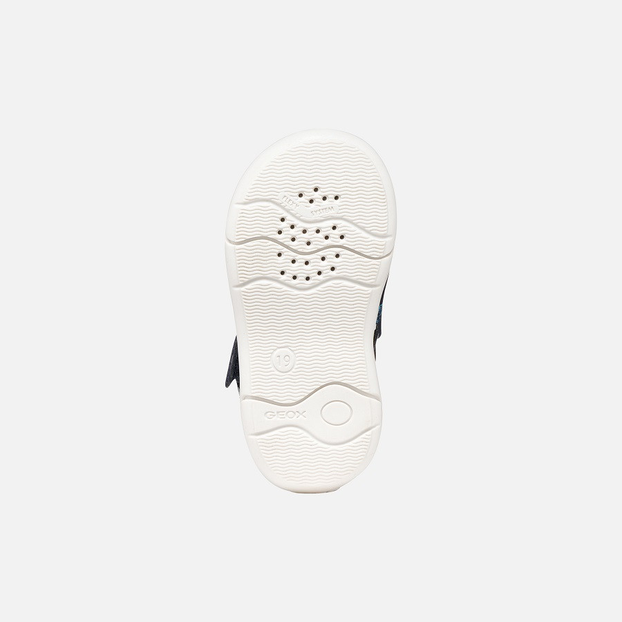 • GEOX LÉLEGZŐ® talp, amely szárazon tartja a lábat. Az izzadság a gumitalpon található lyukacskákon keresztül távozik, a víz bejutását pedig egy membrán megakadályozza.