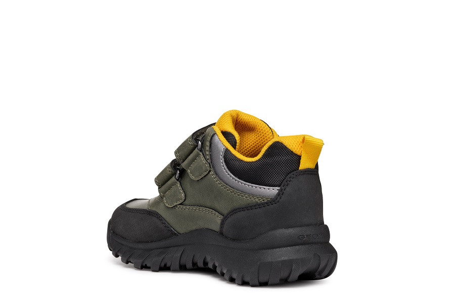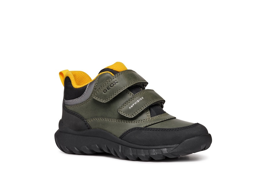 Vízálló gyerekcipő, amely hideg őszi időben, és téli időben is hordható.  A laminált nemez talpnak köszönhetően rendkívül jól ellenáll a hidegnek. A Geox Amphibiox vízálló cipő teljesen vízálló lábbeli, megakadályozza a cipőbe való víz bejutását és biztosítja a megfelelő szellőzést. A dupla tépőzárral  könnyű a fel-és levétel. A gyermek lábának tökéletes védelmet biztosít. Egyedülálló lélegző talppal.