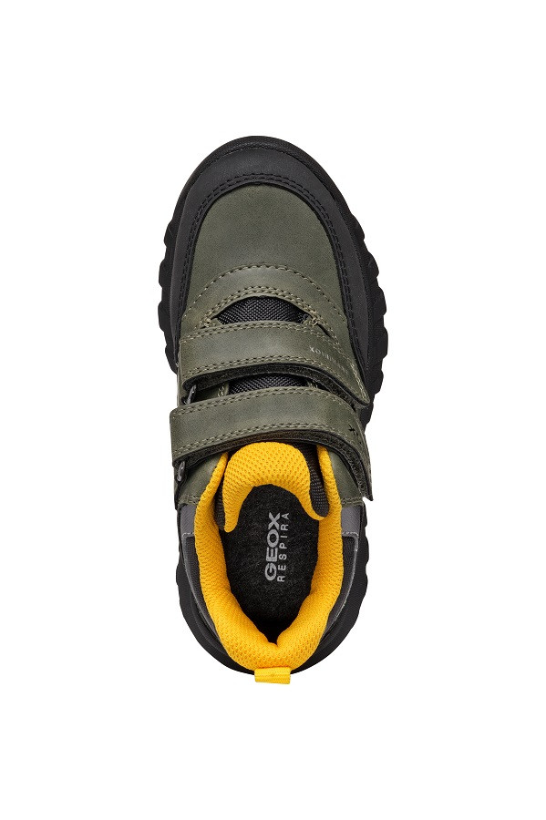 Vízálló gyerekcipő, amely hideg őszi időben, és téli időben is hordható.  A laminált nemez talpnak köszönhetően rendkívül jól ellenáll a hidegnek. A Geox Amphibiox vízálló cipő teljesen vízálló lábbeli, megakadályozza a cipőbe való víz bejutását és biztosítja a megfelelő szellőzést. A dupla tépőzárral  könnyű a fel-és levétel. A gyermek lábának tökéletes védelmet biztosít. Egyedülálló lélegző talppal.