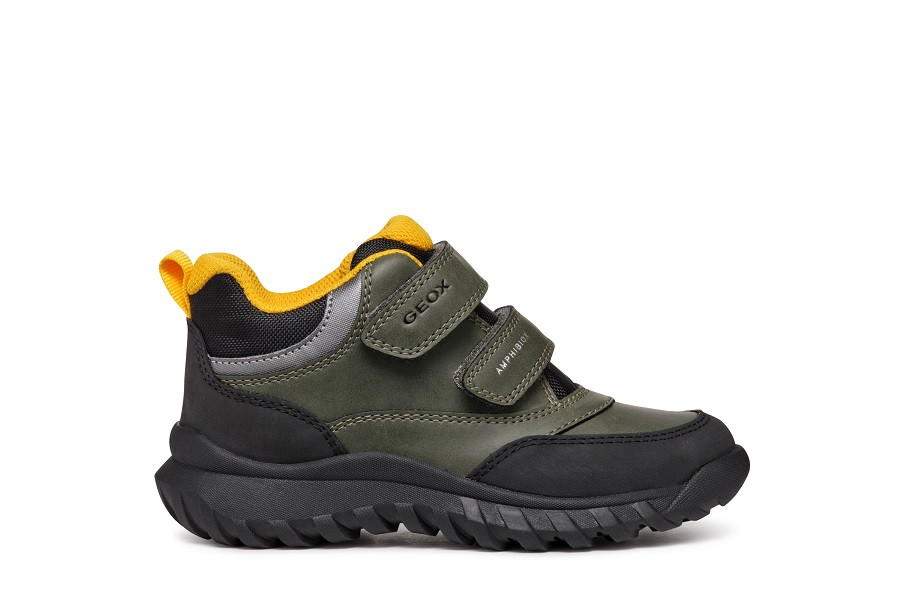 Vízálló gyerekcipő, amely hideg őszi időben, és téli időben is hordható.  A laminált nemez talpnak köszönhetően rendkívül jól ellenáll a hidegnek. A Geox Amphibiox vízálló cipő teljesen vízálló lábbeli, megakadályozza a cipőbe való víz bejutását és biztosítja a megfelelő szellőzést. A dupla tépőzárral  könnyű a fel-és levétel. A gyermek lábának tökéletes védelmet biztosít. Egyedülálló lélegző talppal.