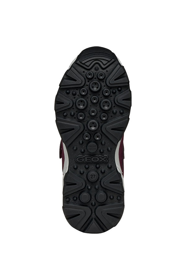 • GEOX LÉLEGZŐ® talp, amely szárazon tartja a lábat. Az izzadság a gumitalpon található lyukacskákon keresztül távozik, a víz bejutását pedig egy membrán megakadályozza.