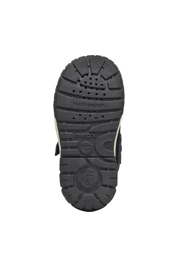 • GEOX LÉLEGZŐ® talp, amely szárazon tartja a lábat. Az izzadság a gumitalpon található lyukacskákon keresztül távozik, a víz bejutását pedig egy membrán megakadályozza.