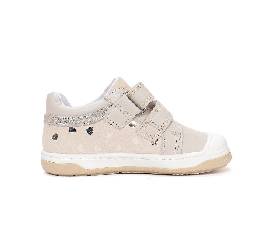 Alacsony szárú supinált zárt gyerekcipő.  Az kislányoknak nemcsak egészséges, de divatos viselet is a szupináció előnyével. A cipő talpának belsejében elhelyezett szupinálás / döntés elősegíti a megfelelő lábtartást. Praktikus gumis orr részével védi a lábujjakat. Tépőzáras kialakításának köszönhetően igazán könnyű a fel-és levétel. Átmeneti gyerekcipő.