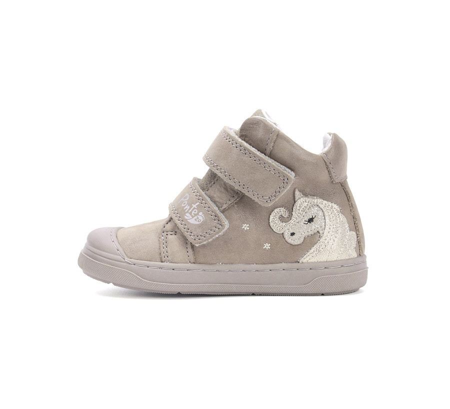 Magasszárú supinált zárt gyerekcipő.  Az kislányoknak nemcsak egészséges, de divatos viselet is a szupináció előnyével. A cipő talpának belsejében elhelyezett szupinálás / döntés elősegíti a megfelelő lábtartást. Praktikus gumis orr részével védi a lábujjakat. Tépőzáras kialakításának köszönhetően igazán könnyű a fel-és levétel. Átmeneti gyerekcipő.