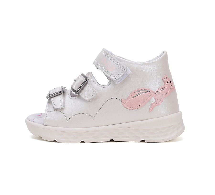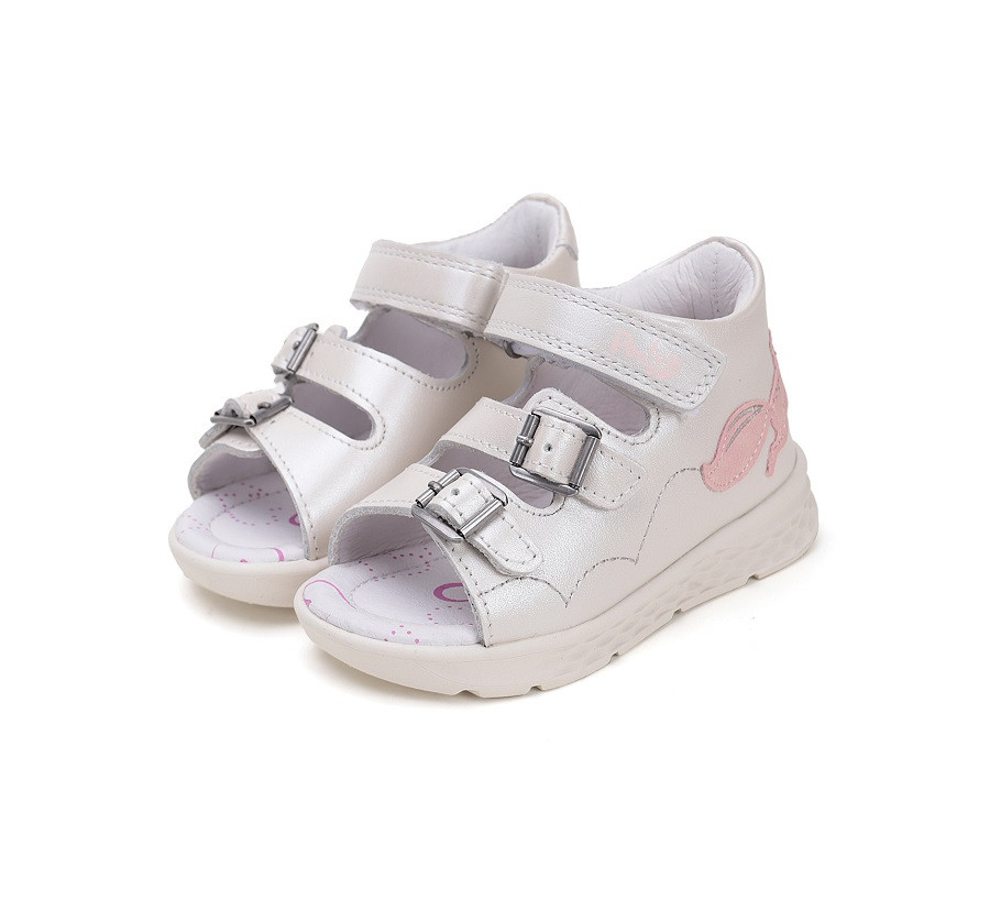 Klasszikus megjelenésű szupinált gyerekszandál, dupla csatos, egy tépőzáras kialakításban. Fehér színben, valódi bőrből készült szandál. Maximális kényelmet biztosít akár az oviban vagy utcai használat során. A szandál talpának belsejében elhelyezett szupinálás elősegíti a megfelelő lábtartást. EGÉSZSÉGPÉNZTÁRRA ELSZÁMOLHATÓ!