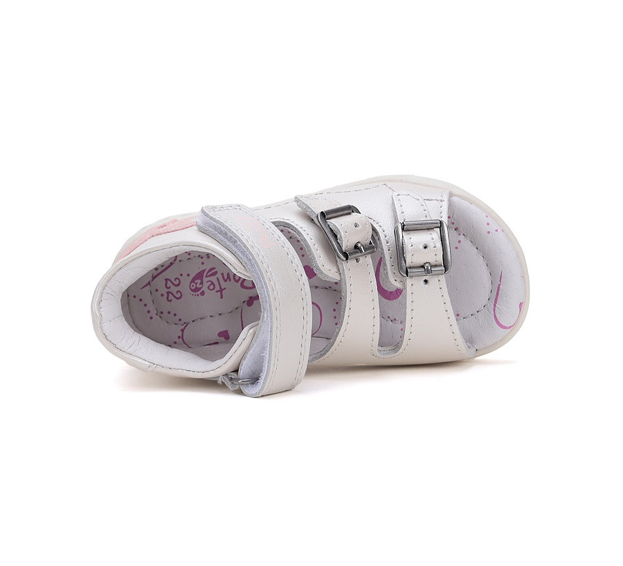 Klasszikus megjelenésű szupinált gyerekszandál, dupla csatos, egy tépőzáras kialakításban. Fehér színben, valódi bőrből készült szandál. Maximális kényelmet biztosít akár az oviban vagy utcai használat során. A szandál talpának belsejében elhelyezett szupinálás elősegíti a megfelelő lábtartást. EGÉSZSÉGPÉNZTÁRRA ELSZÁMOLHATÓ!