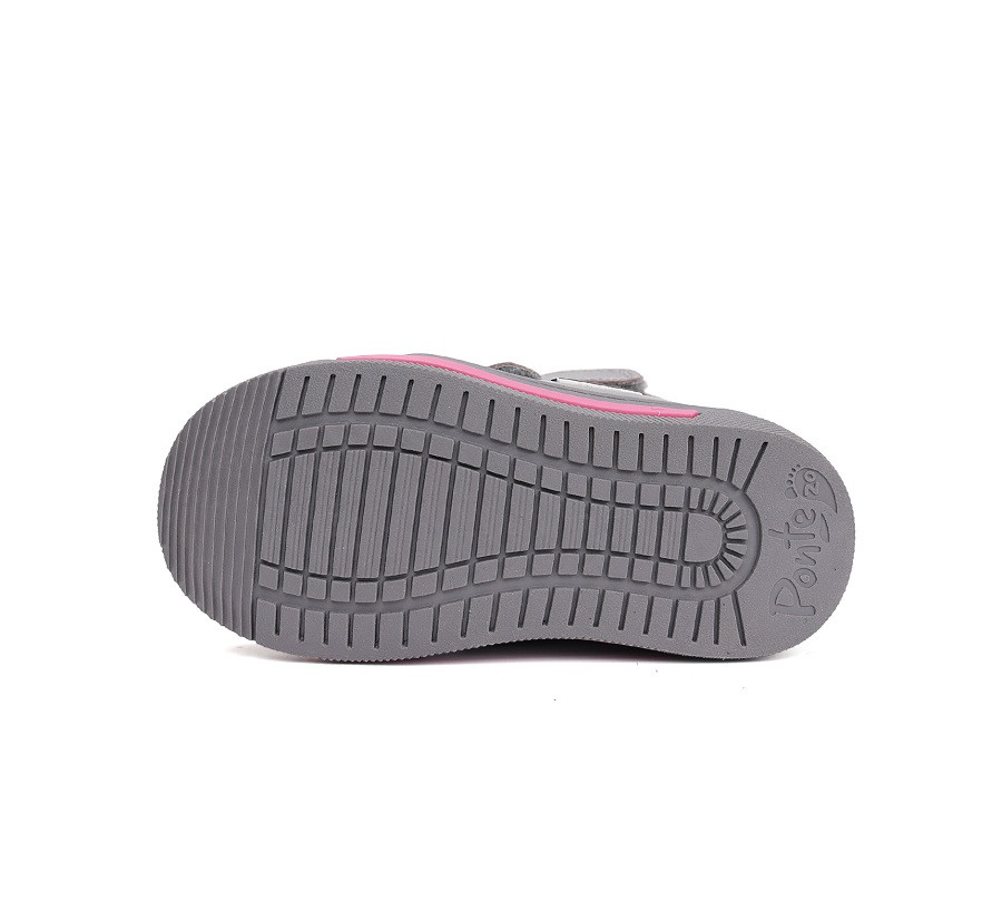 A Ponte20 márka egyik sikeres gumis orrú modellje, Aqua-Tex vízálló membránnal szürke színben. Az izgő-mozgó kislányoknak egészséges és csinos viselet, valódi bőrből készült supinált zárt gyerekcipő. Praktikus gumis orr részével igazi strapabíró lábbeli. Tépőzáras kialakításának köszönhetően igazán könnyű a fel-és levétel.