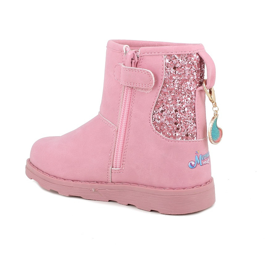 Csinos, vékony béléses csillogó kislány bokacsizma. Divatos és komfortos. Anyaga szintetikus/textil, a talpbetét bőrrel borított.