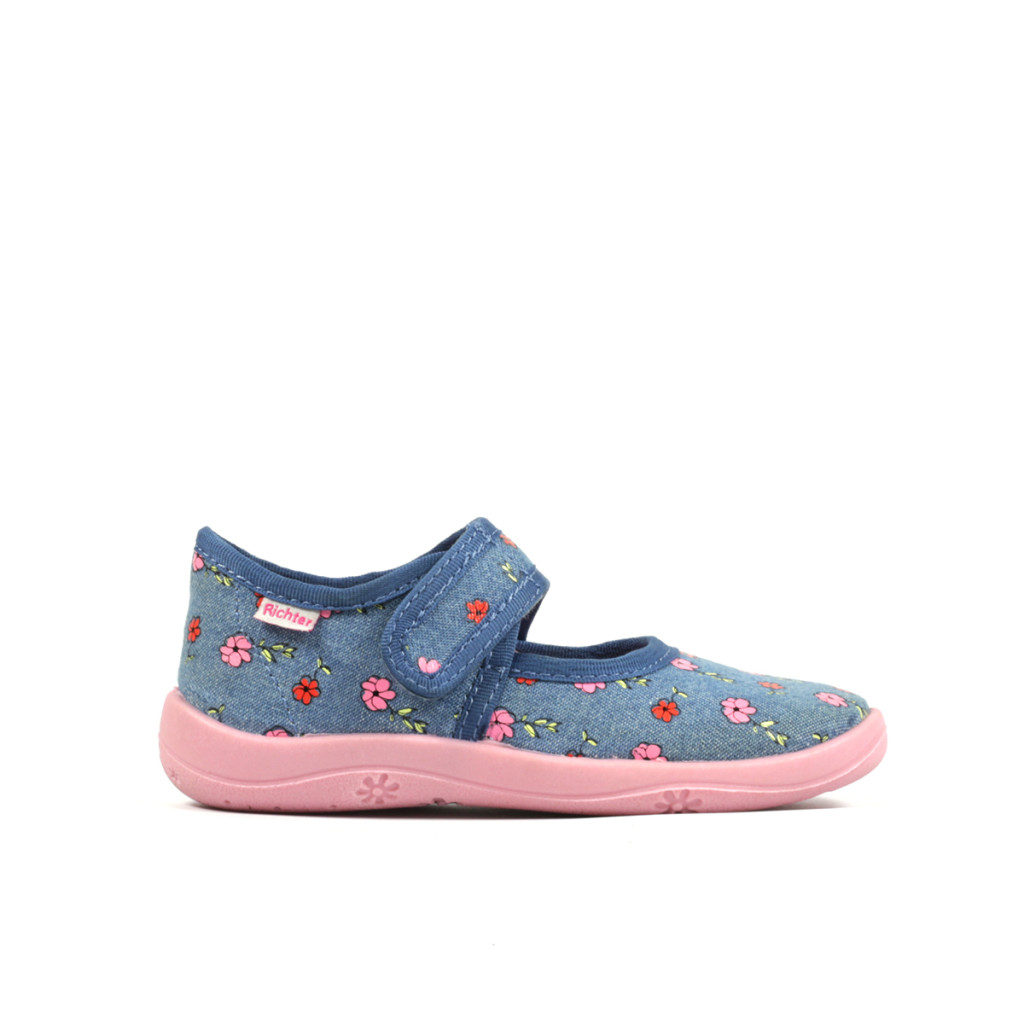 Richter világoskék, vászon balerina cipő, váltócipő, tornacipő mintás vászon anyagból. Óvodai váltcipőnek vagy nyáron utcai használatra  is használható. Anyaga kívül- belül lélegző pamut.