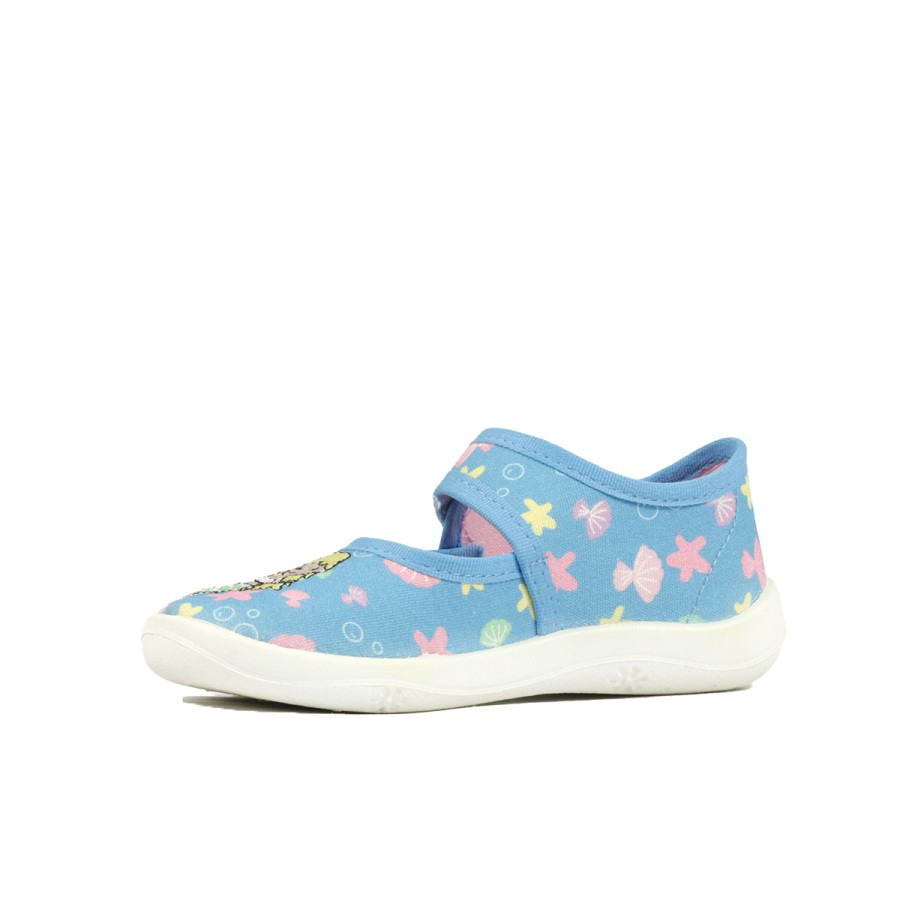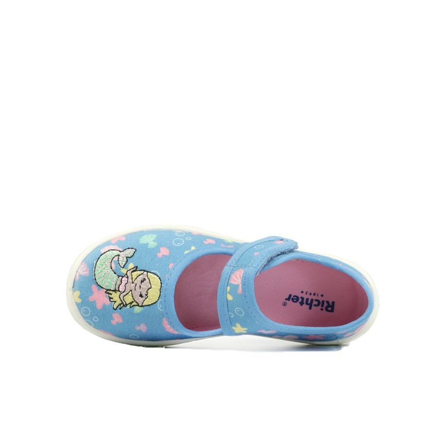 Richter világoskék, vászon balerina cipő, váltócipő, tornacipő sellős díszítéssel. Óvodai váltcipőnek vagy nyáron utcai használatra  is használható. Anyaga kívül- belül lélegző pamut.