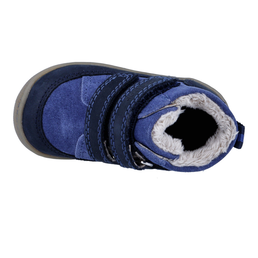 Magasszárú vízálló gyerekcipő fiúknak a hideg őszi időben és téli időben. A cipő belseje és a talpbetét meleg béléses.