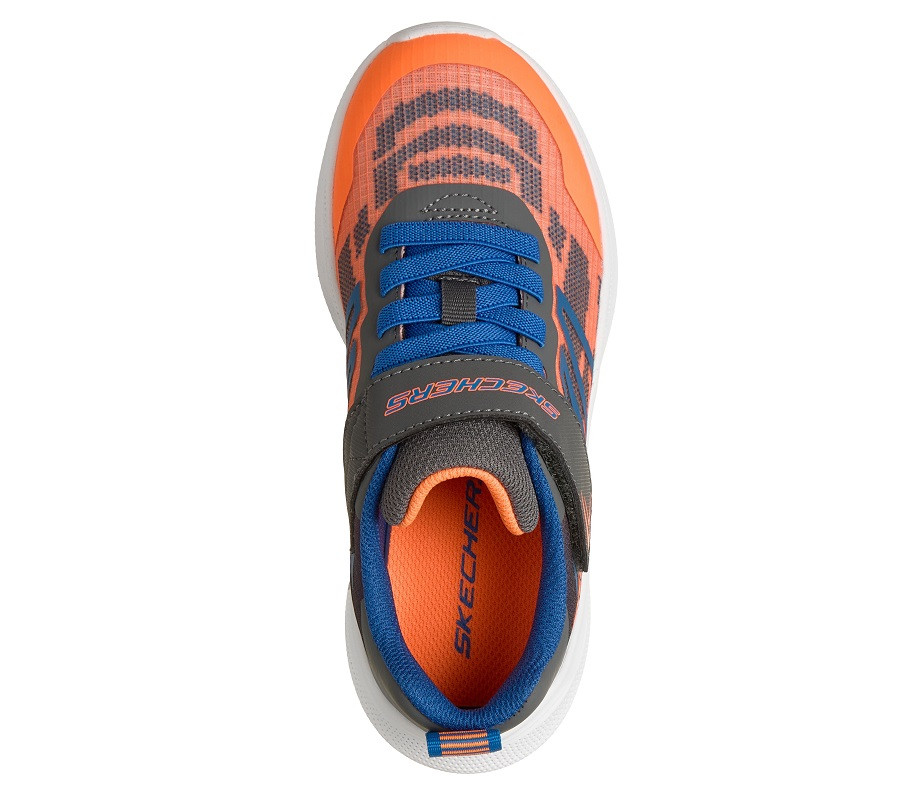 Narancs-szürke-kék színű , szuperkönnyű gyerekcipő a népszerű amerikai Skechers márkától. Rendkívül komfortos,  kényelmes párnázott talpbetéttel.