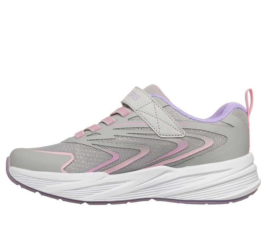 Szürke-rózsaszín, szuperkönnyű gyerekcipő a népszerű amerikai Skechers márkától. Rendkívül komfortos, párnázott talpbetét.
